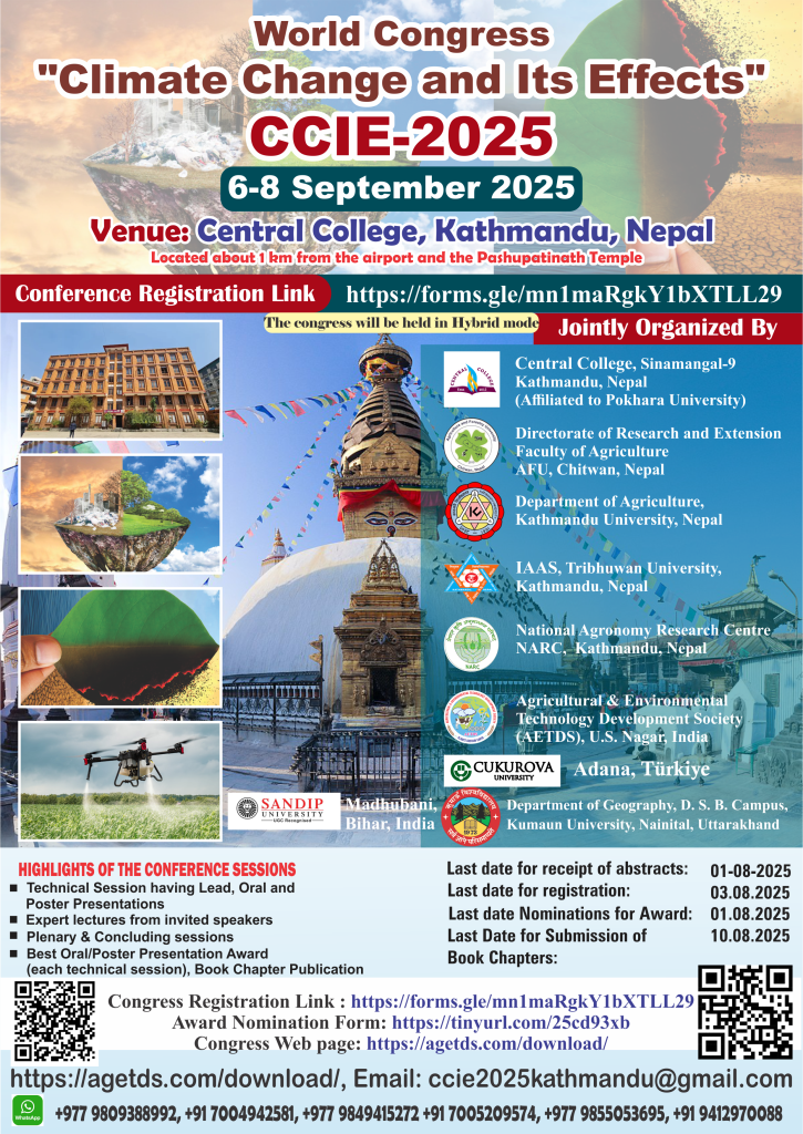 World Congress on “Climate Change and Its Effects (CCIE 2025)”, scheduled to be held from 6th to 8th September 2025 at Central College, Kathmandu, Nepal.